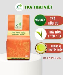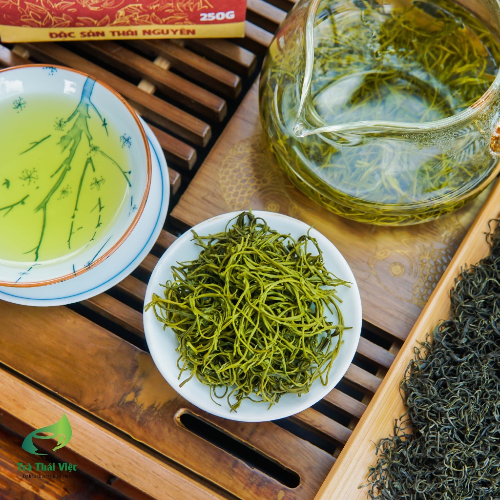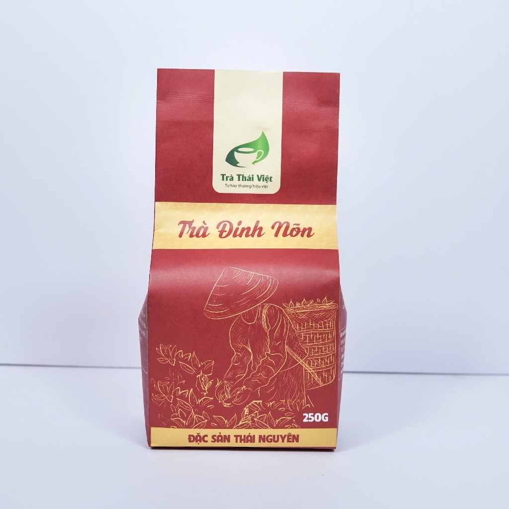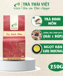 Trà Đinh Nõn thương hiệu Thái Việt là dòng trà xanh Thái Nguyên được thu hái tuyển chọn từ những chồi non trên cùng của búp trà thuộc giống thanh trà đặc sản. Trà Đinh (hay còn gọi là chè đinh) là phẩm trà cao cấp nhất khi thu hái tất cả mọi loại trà. Đinh ở đây chính là phần búp non nhất của lá trà. Phần búp này chính là cánh trà đang khép, cánh trà tròn và dài như cây đinh nên được gọi là trà đinh. Vì nguyên liệu là những lá trà đơn lẻ nên trà đinh thành phẩm có dạng thẳng như chiếc đinh khi pha cho một hương vị đặc trưng và riêng biệt tiền chát dịu nhẹ và hậu vị ngọt sâu cùng hương thơm thuần khiết lắng đọng trong chén trà.