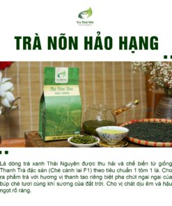 – Hương vị: Thơm hương cốm non tự nhiên, dày hương, đượm vị. Thưởng thức cảm nhận được tiền vị chát dịu, trung vị ngậy béo, hậu vị ngọt sâu dư đọng lại lâu.