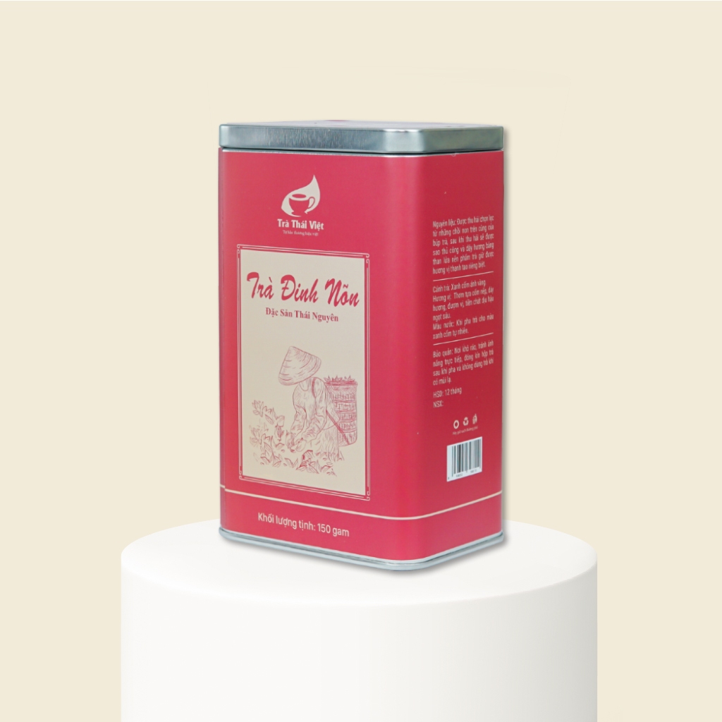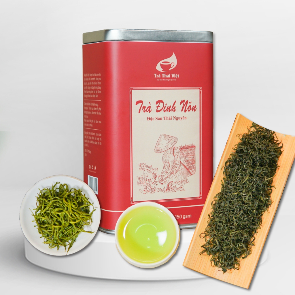 Trà Đinh Nõn thương hiệu Thái Việt là dòng trà xanh Thái Nguyên được thu hái tuyển chọn từ những chồi non trên cùng của búp trà thuộc giống thanh trà đặc sản. Đinh ở đây chính là phần búp non nhất của lá trà. Phần búp này chính là cánh trà đang khép, cánh trà tròn và dài như cây đinh nên được gọi là trà đinh. Vì nguyên liệu là những lá trà đơn lẻ nên trà đinh thành phẩm có dạng thẳng như chiếc đinh khi pha cho một hương vị đặc trưng và riêng biệt tiền chát dịu nhẹ và hậu vị ngọt sâu cùng hương thơm thuần khiết lắng đọng trong chén trà.